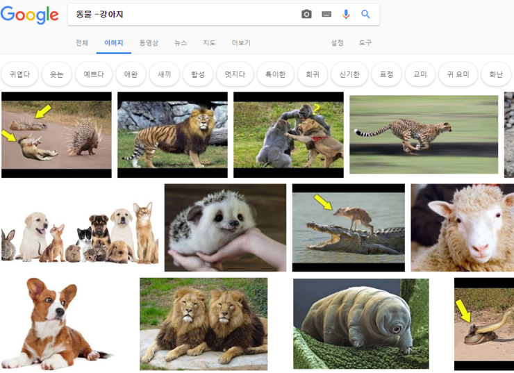 여기서 검색창에 '-강아지'를 입력해보겠습니다.