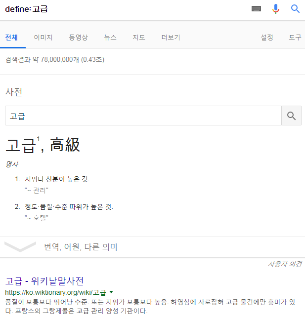 그다음은 'define' 연산자를 이용해서 고급을 검색한 경우입니다.