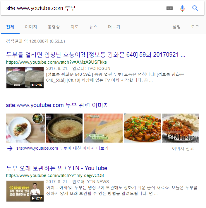 그럼 youtube에서만 '두부'를 검색한다고 생각하고