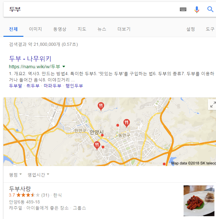 똑똑한 구글이 현재 제가 있는 안양시근처의 두부집을 광고해주네요.