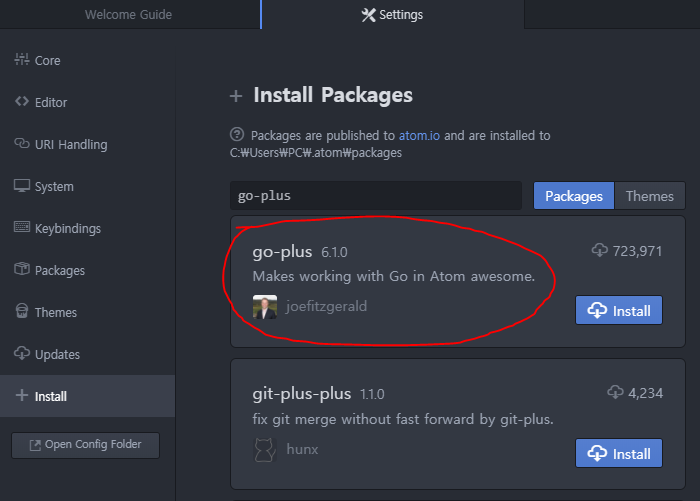 Settings -> Install 에서 'go-plus'를 검색 후 다운로드 한다