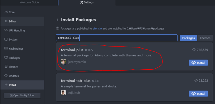 그 다음 'terminal-plus'를 검색 후 다운로드 한다