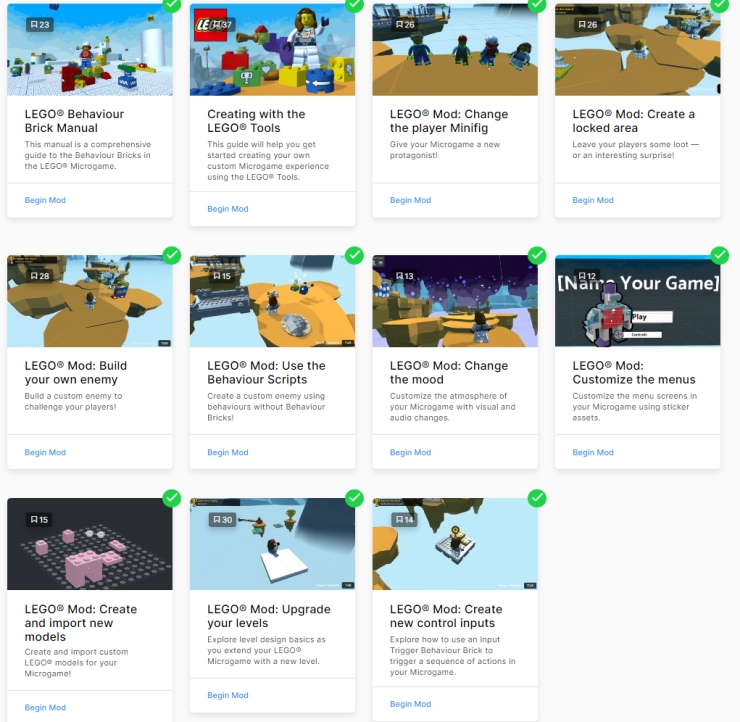 메인 튜토리얼 포함, 총 12가지의 튜토리얼로 구성되어있고 스크립트를 사용하지 않고도 자신만의 게임을 만들 수 있어 유니티 입문자에게 매우 추천하는 튜토리얼입니다. 하지만, 여기서 제공하는 모든 에셋의 저작권은 레고에게 있기에 이걸로 만든 게임은 절대 상업적 용도로 배포하시면 안됩니다!
