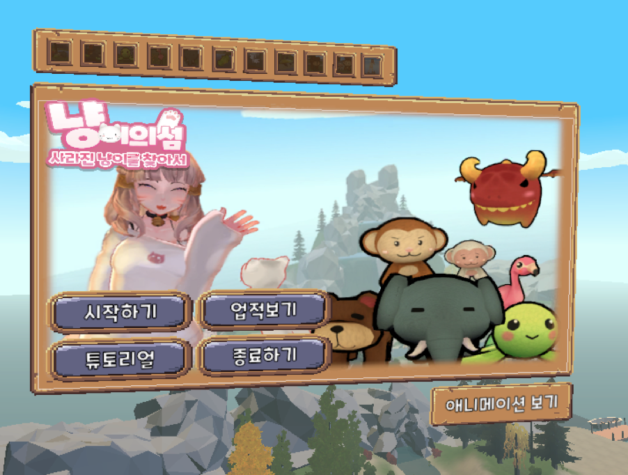- 시작하기 / 업적보기 / 튜토리얼 / 종료하기 / 애니메이션 보기 선택