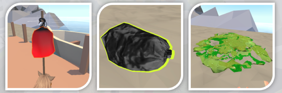 청소년 층에게 환경파괴와 쓰레기투기 문제에 대해 딱딱하지 않으면서 부드럽고 재미있게 알려줄 수 있는 게임입니다. 실감나는 VR환경에서 섬을 청소하고, 섬이 정화될 때 NPC가 기뻐하는 모습을 보며 환경보전에 대해 더 깊은 동기를 부여할 수 있을 것입니다.