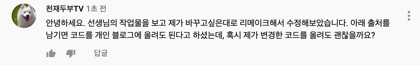 현재 원본 튜토리얼을 올려주신 분에게 변경한 코드를 올려도 되냐고 물어본 상태입니다!