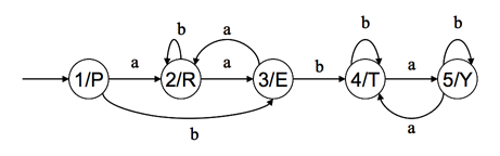 직병렬 무어 기계의 한 출력 심볼이 지워져 있다. 기계의 출력이 주어졌을 때, 지워진 심볼을 찾는 프로그램을 작성하시오. 항상 지워진 심볼을 찾을 수 있는 것은 아니다.
