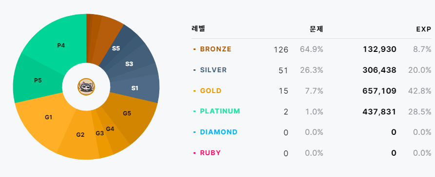 무려 4가지 언어를 백준에서 연습했어서(C#, C++, JS, Python) 브론즈 문제의 비중이 유독 높은것같다.