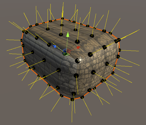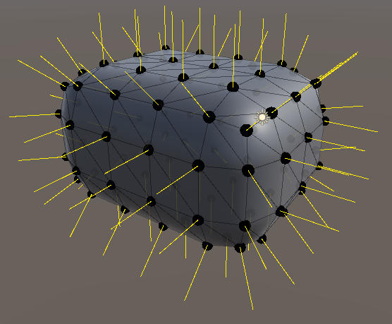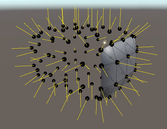 Gizmos.DrawRay(vertices[i], normals[i]);