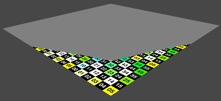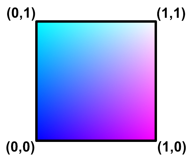 유니티에서 U좌표는 왼쪽에서 오른쪽으로 증가합니다. V좌표는 아래에서 수직으로 같은 방향으로 증가하며, UV 모두 0에서 1사이의 값을 가집니다. Direct3D에서는 V좌표가 위에서 아래로 증가합니다만, 이 차이에 대해 걱정할 필요는 거의 없습니다.