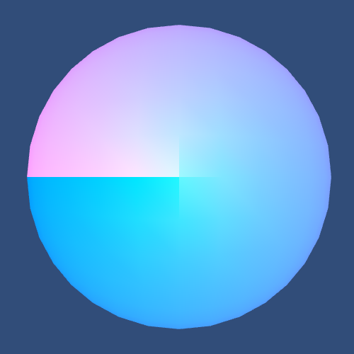 렌더링을 더욱 단순화하려면 디렉셔널 라이트 오브젝트를 비호라성화하거나 삭제합니다. 이렇게 하면 씬의 직접 조명과 그로 인해 드리워지는 그림자가 제거됩니다. 그러면 구의 실루엣이 ambient color로 처리된 단색 배경만 남게 됩니다.
