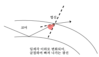 광섬유 밖으로 굴절하여 빠져나갈 수 있음.