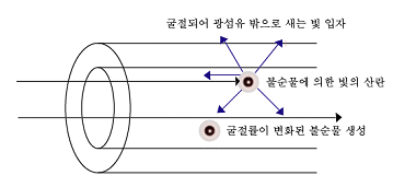 광섬유 재료의 혼합과정에서 일어나는 작은 변화나, 실리카의 밀도 변화로 일어남.