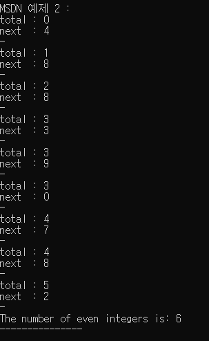 MSDN에서 제공하는 예제를 해석하기 좋게 수정하여 출력해보았습니다.