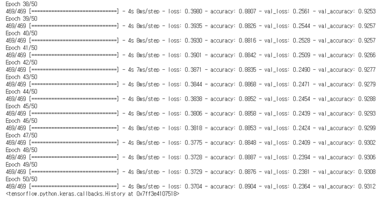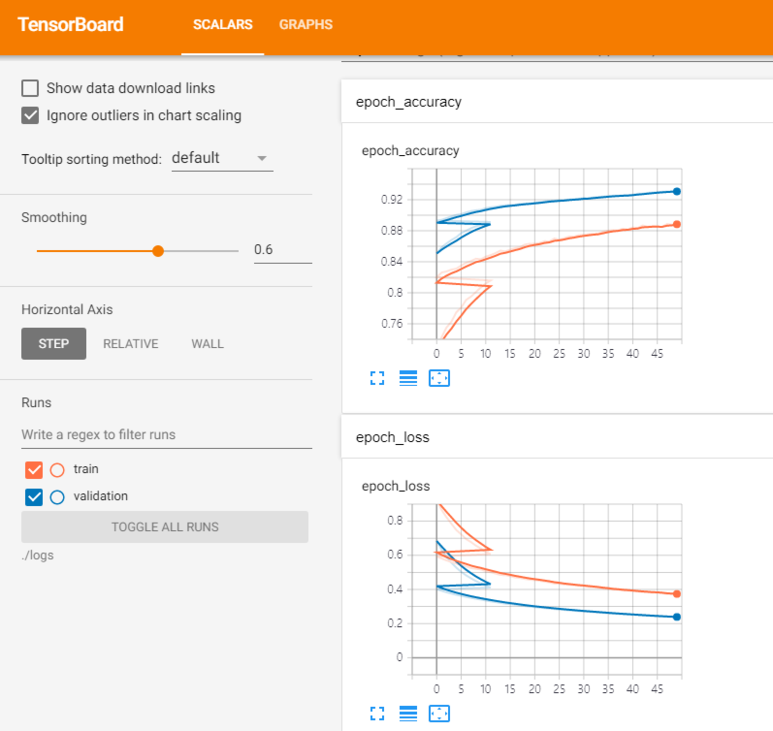 그리고 위 학습과정을 TensorBoard로 표현한 이미지입니다. 실제 강좌에서는 200번 학습시켰는데 저는 간단히 50번만 학습시켰어요! (GPU로 해도 몇분 걸리니까 잠시 딴짓하다오세요)