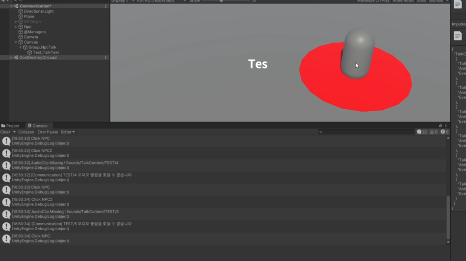 이제 기본 셋팅은 끝났다. 기본 컨텐츠부터 하나씩 만들어가보자. 가장 기본적인 컨텐츠는 바로 교수님과 의사소통 할 수 있는 구조이다. 마을에 교수님들이 있고, 그들과 대화하며 학교에 대한 정보를 얻을 수 있는게 이번 컨텐츠의 목표이다.